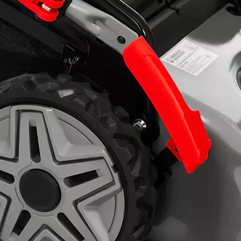 С помощью 6-позиционного рычага настраивается высота стрижки растительности. Диапазон регулировки составляет от 30 до 82 мм. Благодаря этому косилка поможет подравнять газон на участке в конкретном месте или подстричь траву под определенные требования к конкретному типу газона.
