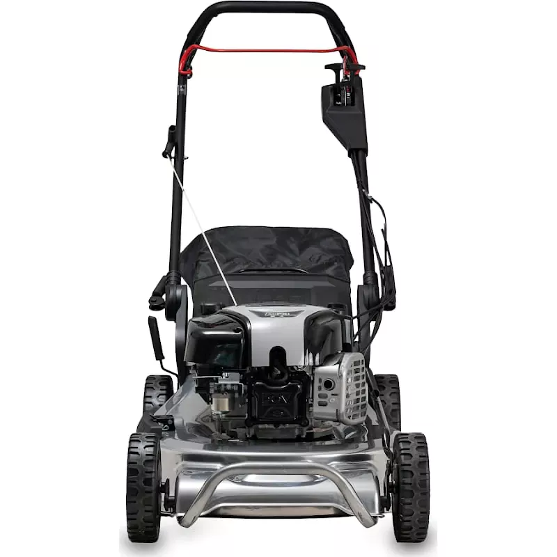 В газонокосилке установлен мощный 4-тактный бензиновый мотор Briggs&Stratton 750PXI I/C DOV. Профессиональный двигатель эффективно работает на больших территориях. Для простого запуска предусмотрена функция ReadyStart. К достоинствам мотора также относится верхнее расположение клапанов, которое обеспечивает высокий крутящий момент и тихую работу.