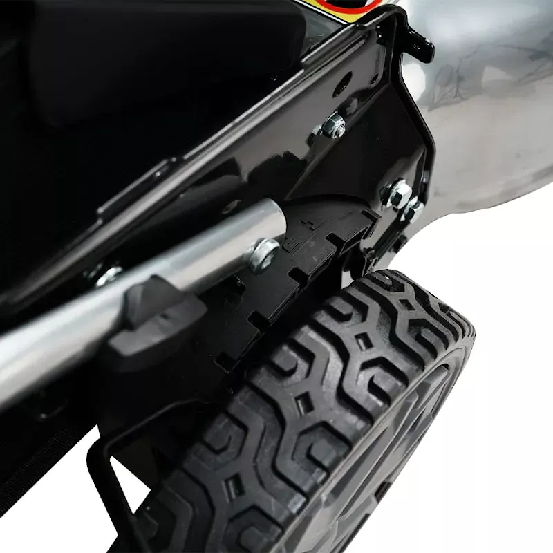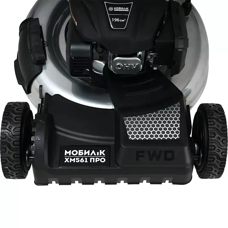 Самоходный тип перемещения газонокосилки Мобил К XM561 Про значительно облегчает стрижку травы. Вам не понадобится толкать технику по участку. Это облегчает маневрирование и разворот модели. Скорость движения составляет 3,4 км/ч. Вам понадобится только задавать направление при помощи рукоятки. Колеса оснащены подшипниками для плавного хода. Для лучшей проходимости задние колеса больше передних.