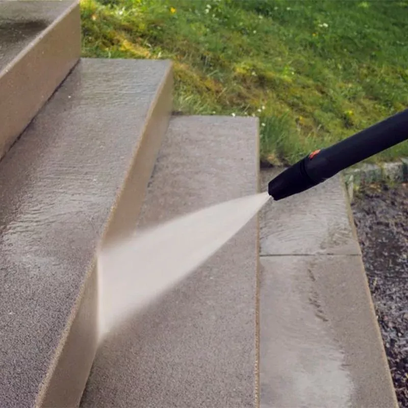 Для эффективной очистки различных поверхностей предусмотрены сменные форсунки. Насадка для формирования плоской струи позволит захватить максимальную площадь поверхности. Форсунка роторного типа обеспечит мощный поток воды для удаления въевшейся грязи.