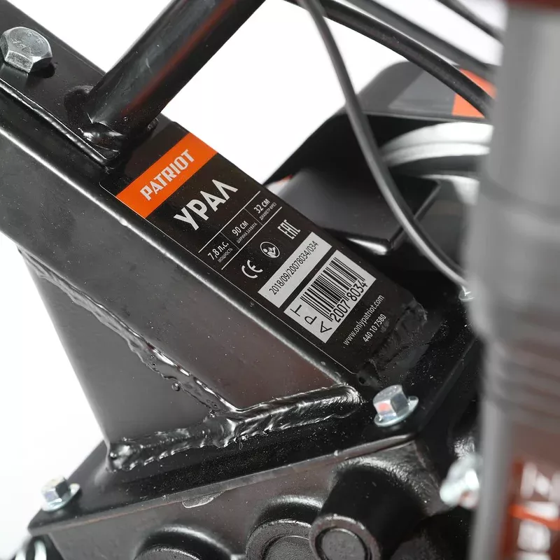 Бензиновый мотоблок оборудован 4-тактным двигателем Patriot Р175FC мощностью 7,8 л.с., который раскручивает режущие элементы до максимальной скорости 107 об/мин. Модель оснащена фрезами диаметром 32 см, которые позволяют обрабатывать тяжелый грунт. В комплект поставки включен сошник, при помощи которого можно регулировать глубину вспашки.