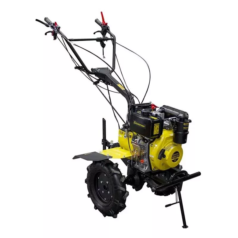 Дизельный мотоблок Champion DC1163E весит 141 кг и обеспечивает вспашку земли на глубину до 300 мм. Модель отлично подойдет даже для плотной почвы, в том числе целины. Есть электрозапуск для простого и быстрого старта.