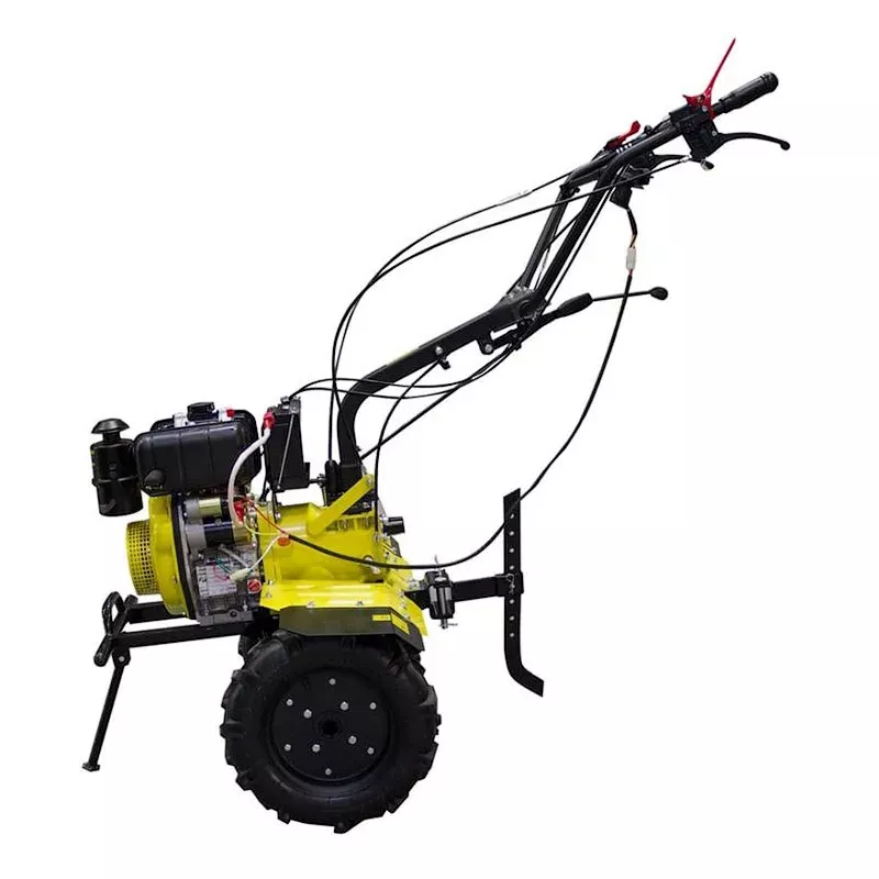 Дизельный мотоблок оснащен большими колесами тракторного типа диаметром 25,4 см. Они обеспечивают высокую проходимость по песку, траве и грязи. Глубокий рельефный рисунок гарантирует хорошее сцепление с поверхностью.