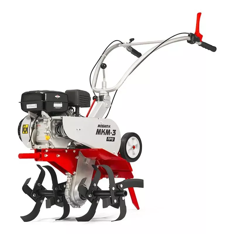 Мотоблок Мобил К МКМ-3 ПРО - профессиональная модель, предназначенная для широкого спектра сельскохозяйственных задач, от простой работы с фрезами до использования дополнительного навесного оборудования. Бензиновый двигатель Briggs&Stratton CR950 мощностью 6,5 л.с и шестеренчато-цепной редуктор, позволяют достичь максимальной эффективности даже при высоких нагрузках.