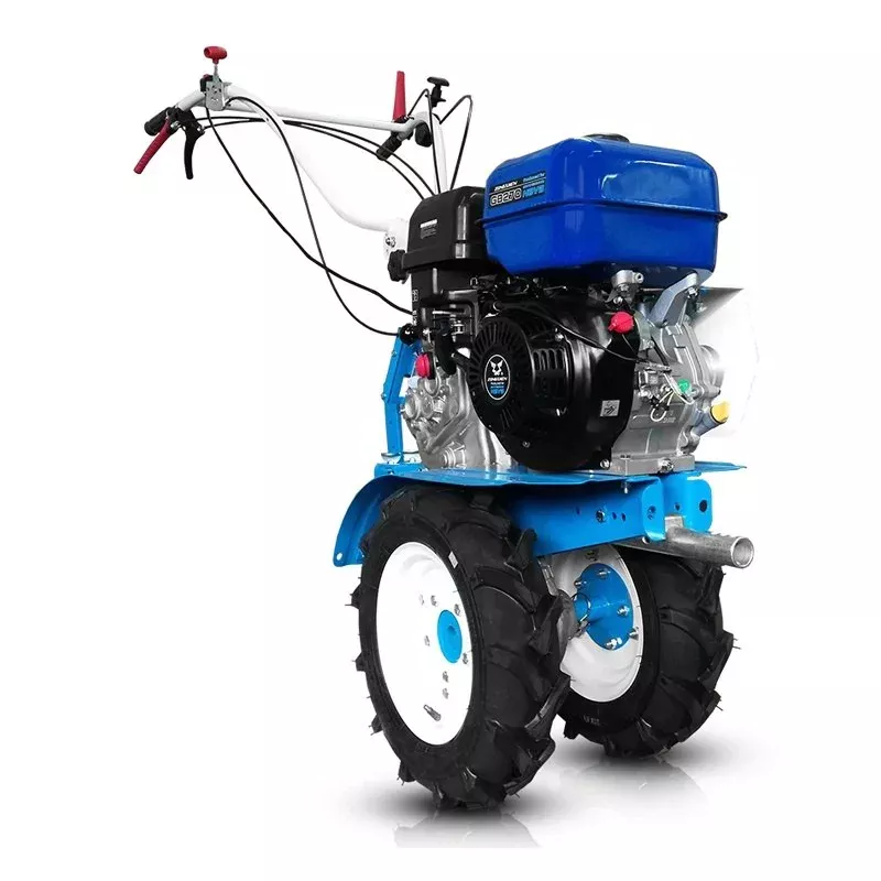 Большие колеса тракторного типа позволяют мотоблоку без труда перемещаться по кочкам, а также ехать по грязи или песку. При этом защитные крылья оградят вас от грязи. Они установлены над колесами с обеих сторон.