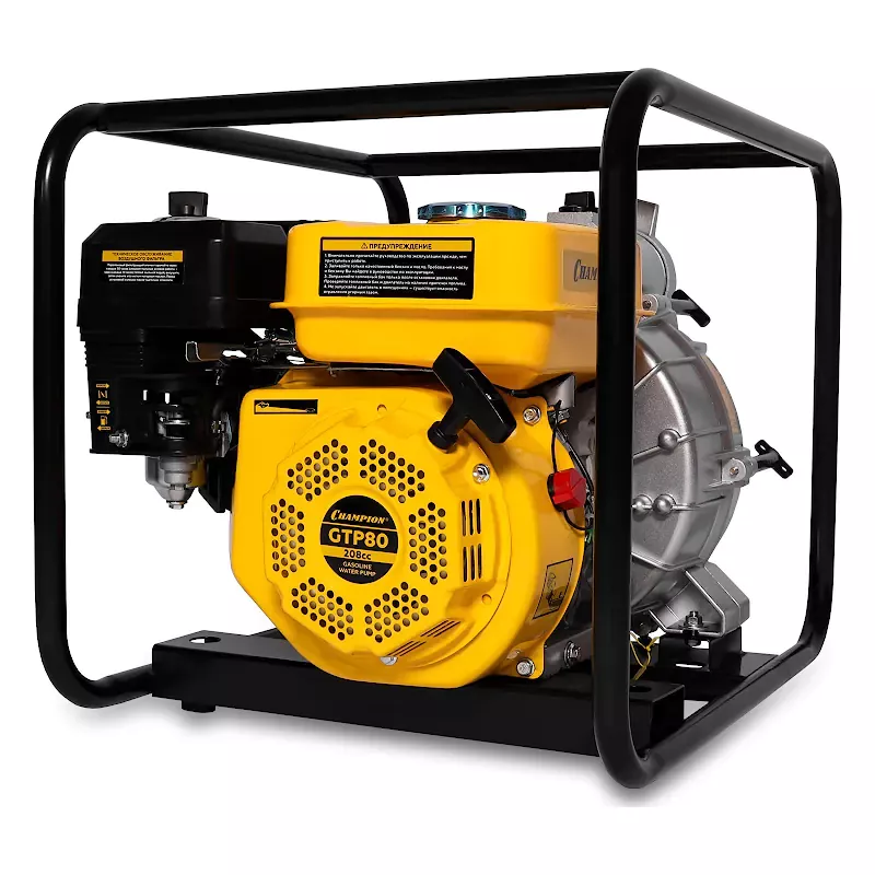 - Металлическая рама защищает мотопомпу Champion GTP80H от ударов и повреждений;