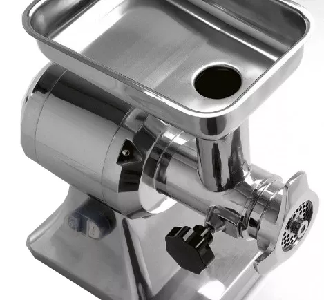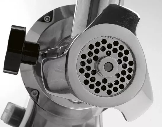 Мясорубка электромеханическая с системой HALF-UNGER (последовательная установка подрезной решетки, ножа, финальной решетки) и производительностью до 150 кг/ч.