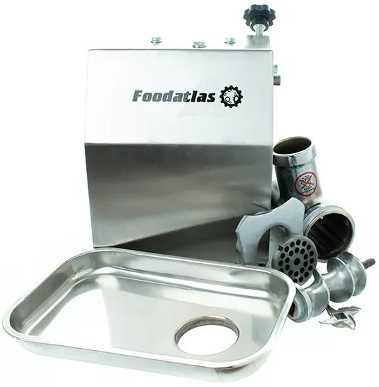 Мясорубка Foodatlas KY-12 с системой ножей Enterprise используется на предприятиях общественного питания и торговли для измельчения кускового жилованного мяса и рыбы при производстве фарша для различных мясных и рыбных блюд.