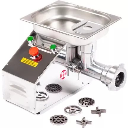 Мясорубка Торгтехмаш ТМ-12 с системой ножей Unger предназначена для измельчения мяса и рыбы на фарш, повторного измельчения котлетной массы и набивки колбас на предприятиях общественного питания.