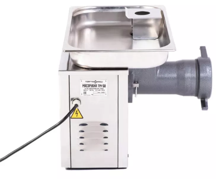 Мясорубка Торгтехмаш ТМ-50 с системой ножей Unger предназначена для измельчения мяса и рыбы на фарш, повторного измельчения котлетной массы и набивки колбас на предприятиях общественного питания.