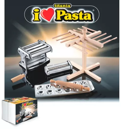 Набор I Love Pasta позволяет приготовить в домашних условиях разнообразные блюда из теста. С помощью набора можно раскатать тонкое тесто, нарезать 4 вида лапши и приготовить равиолли (30 х 30 мм).