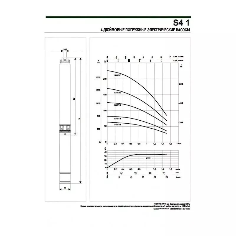 40L- это двухполюсный асинхронный двигатель, детали которого, контактируют с водой, изготавливаются из нержавеющей стали AISI 304L. Охлаждение и смазка шариковых подшипников обеспечиваются специальной жидкостью, одобренной для контакта с пищевыми продуктами. Статор с заменяемой обмоткой установлен в корпусе из нержавеющей стали AISI 304L, закрепленном стальными штифтами на верхней опоре двигателя. Он оснащен углеродно-керамическим механическим уплотнением.