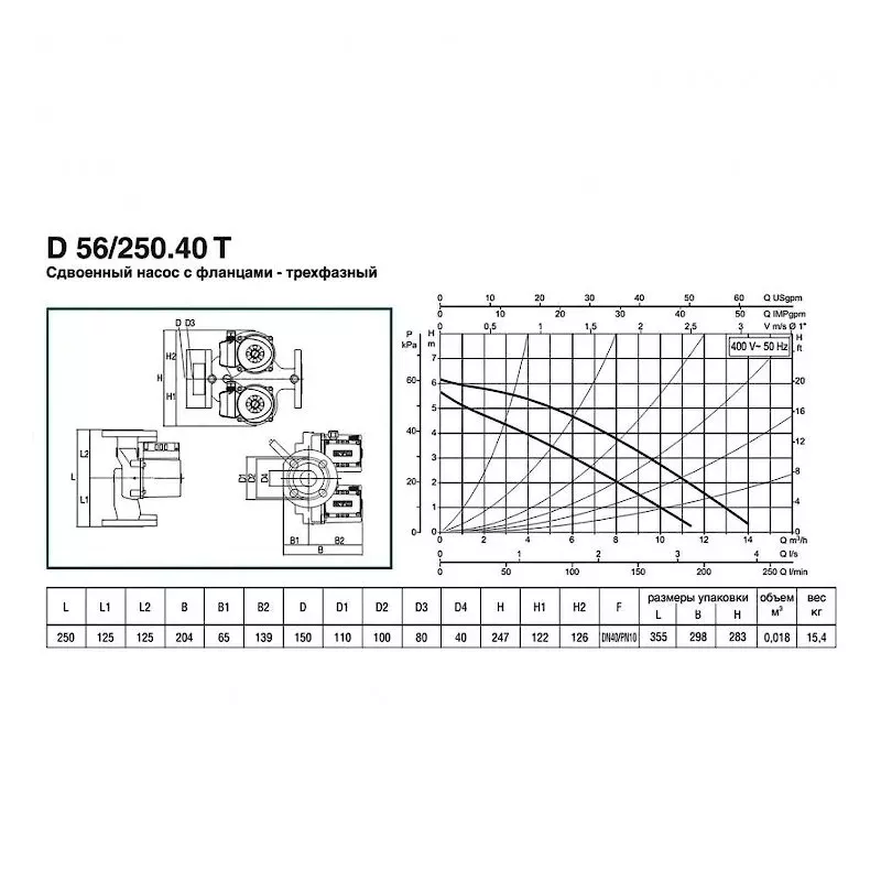 Компания DAB разработали насос серии D 56/250.40 T. Итальянские инженеры создали насос для циркуляции воды в системах отопления, водоснабжения, кондиционирования или охлаждения с мембранными расширительными баками, которые бывают закрытыми или открытыми. Так же насос можно использовать в гидравлических установках. Благодаря фланцевым патрубкам, насос 50/250.40 M можно подсоединить монометр. Такой насос хорошо подойдет для систем отопления административных, промышленных или частных помещений. Жидкость, которую перекачивает этот насос не вязкая и без твердых частиц.