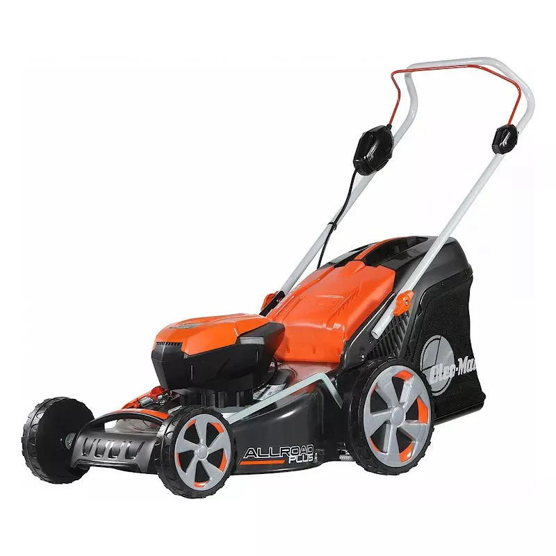 Увеличенные задние колеса. Благодаря конструкции, при которой задние колеса имеют больший диаметр, чем передние, машина легче проходит небольшие неровности газона.