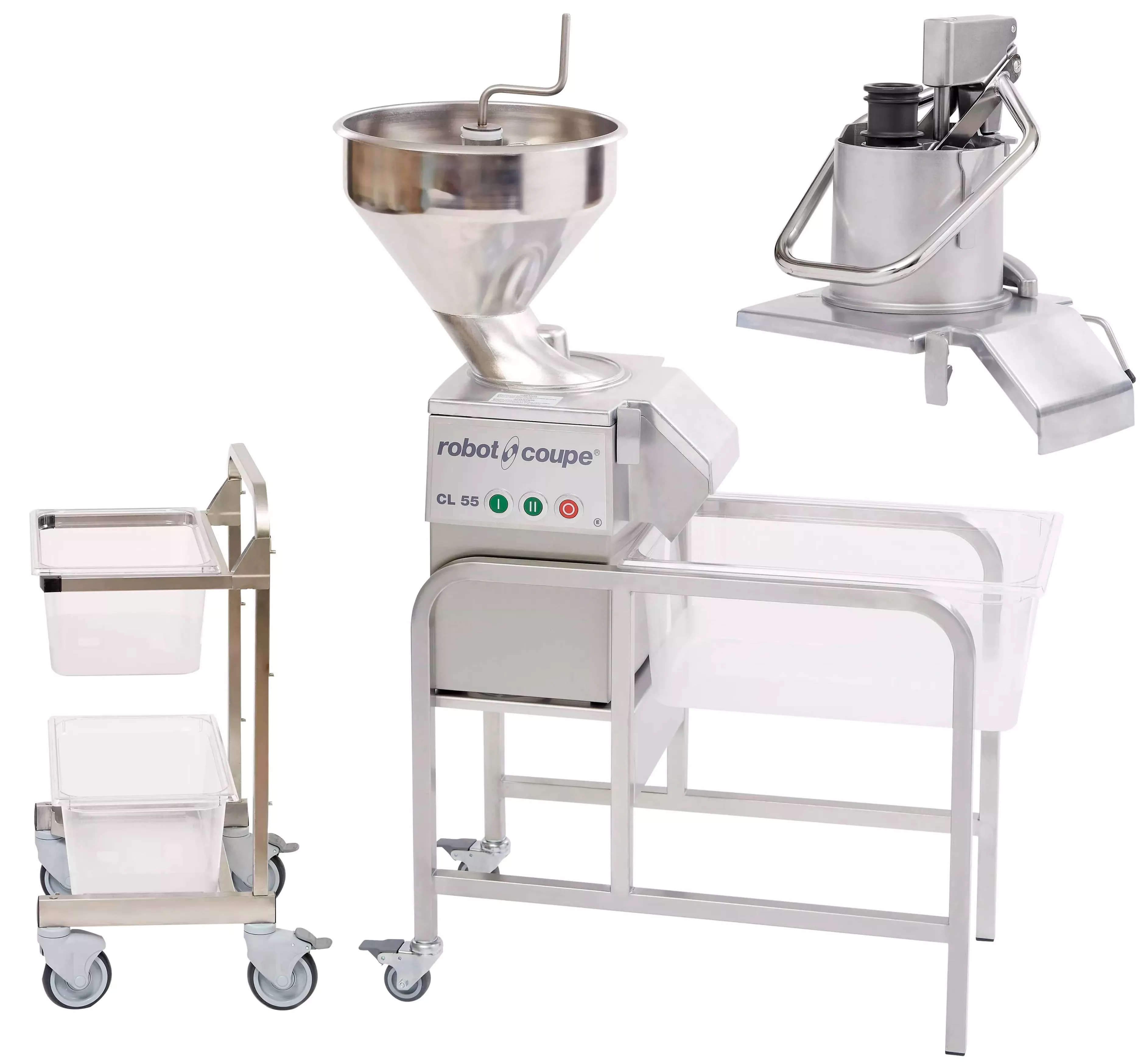 Овощерезка Robot Coupe CL55 рабочая станция используется на предприятиях общественного питания и торговли для нарезки овощей, фруктов, грибов, твердого сыра и колбас и дальнейшего использования их в качестве ингредиентов для приготовления супов, салатов, гарниров и пр. Предназначена для использования в больших ресторанах, столовых, фабриках-кухнях.
