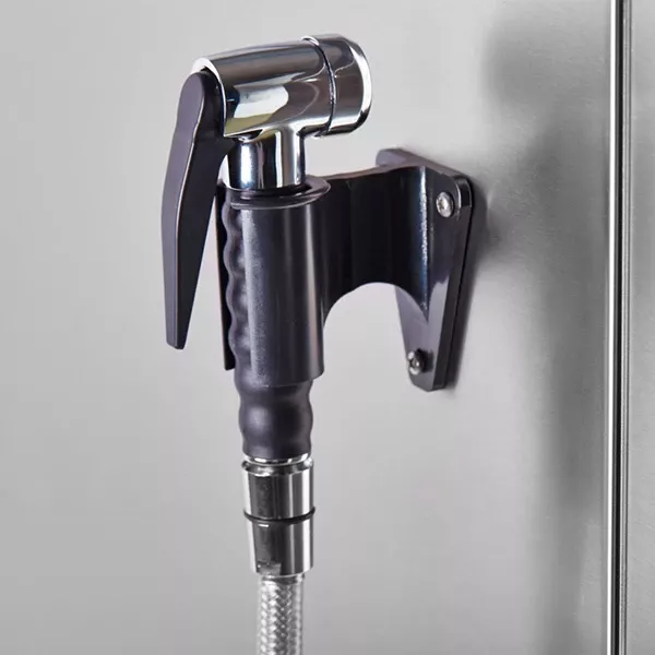 Двухходовый механизм открывания двери обеспечивает безопасность персонала от воздействия горячего пара