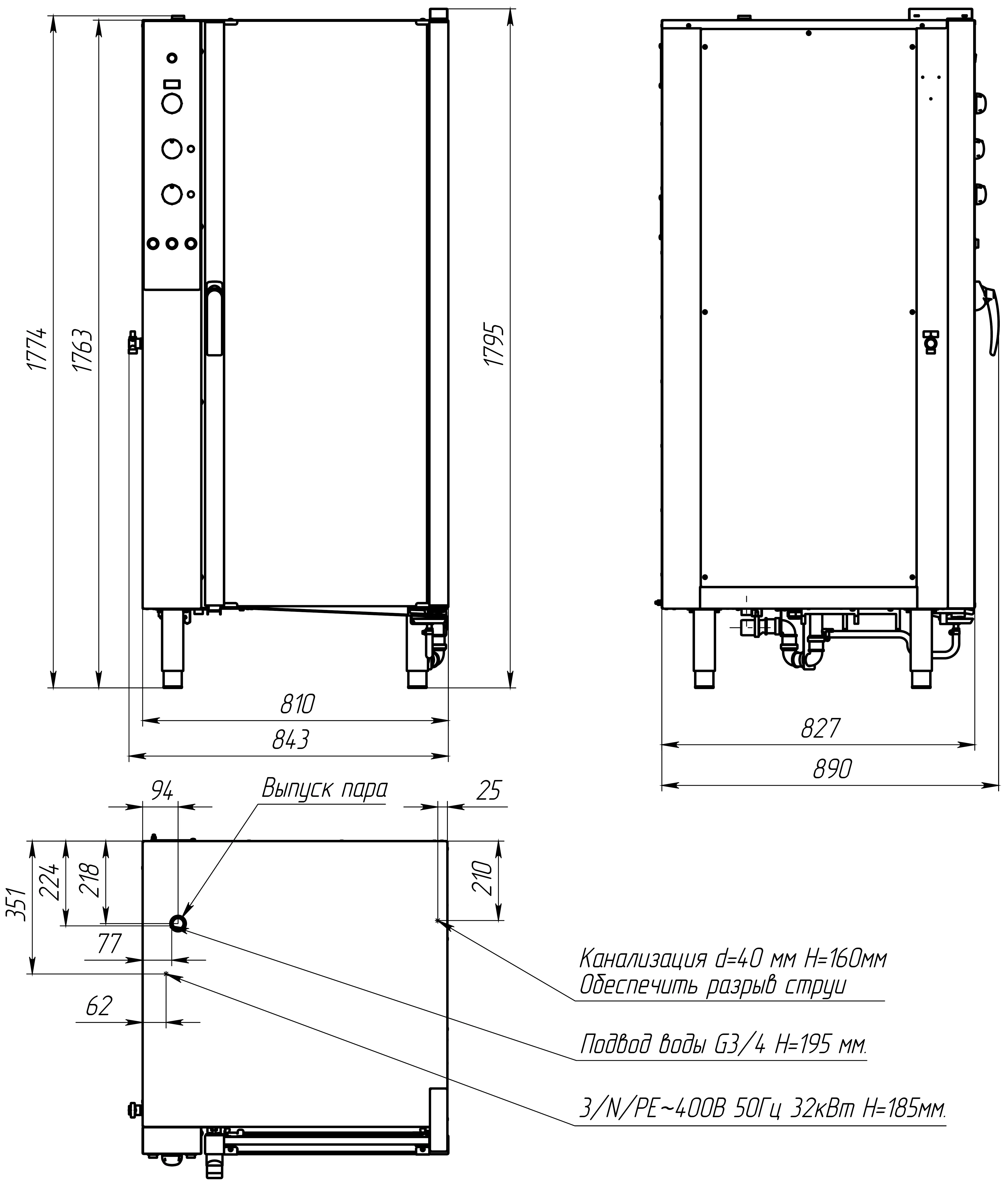 Для удаления пара при открывании двери используется вентиляционный Зонт ЗВП-С-10-1.1-03 (в комплект поставки не входит и приобретается отдельно)