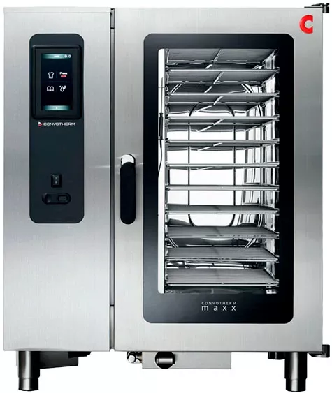 Пароконвенктомат Convotherm maxx 10.10 предназначен для приготовления широкого ассортимента блюд на предприятиях общественного питания. С помощью подобного оборудования можно выпекать сдобные изделия, пироги, готовить сочные стейки, рыбу на пару и т.д.