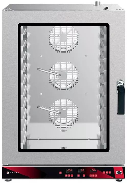 Пароконвектомат Tatra TB10D20L пекарский предназначен для использования на предприятиях общественного питания для выпекания различных кондитерских и хлебобулочных изделий из свежего и замороженного теста с применением режимов сочетания конвекции и пара.