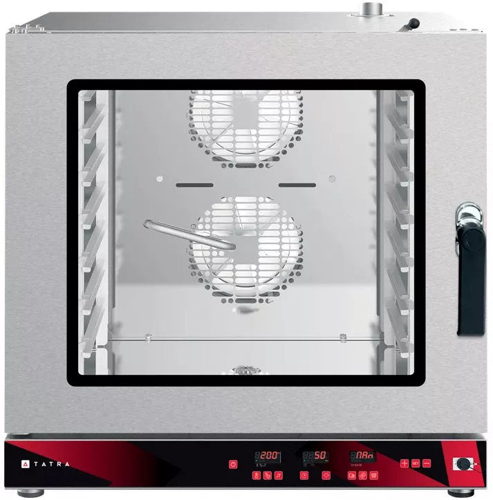 Пароконвектомат Tatra TC07D20L предназначен для использования на предприятиях общественного питания для приготовления различных блюд с применением режимов сочетания конвекции и пара. Фактически пароконвектомат может заменить собой несколько типов теплового оборудования, таких как конвекционная печь, жарочный шкаф, пароварка, плита и сковорода.