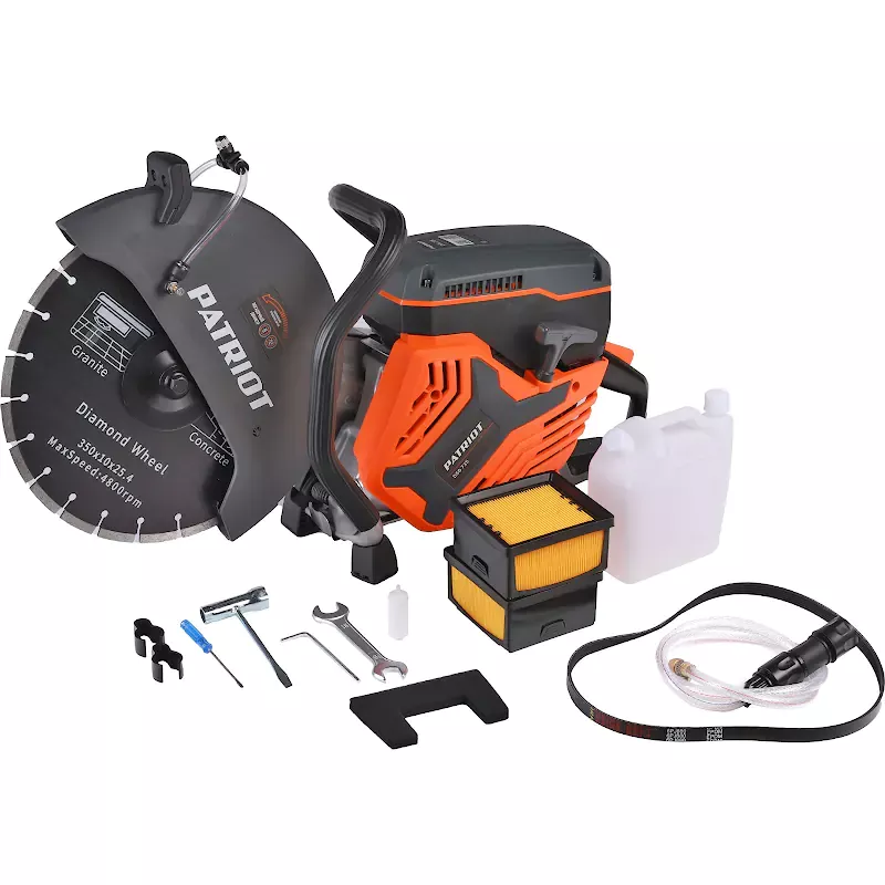Бензиновый резчик Patriot DSG 735 оснащен амортизаторами, уменьшающими передачу вибрации от двигателя к рукояткам. Благодаря этому снижается нагрузка на руки. Дополнительно можно приобрести тележку на колесах, значительно облегчающую выполнение тяжелых работ по резке.
