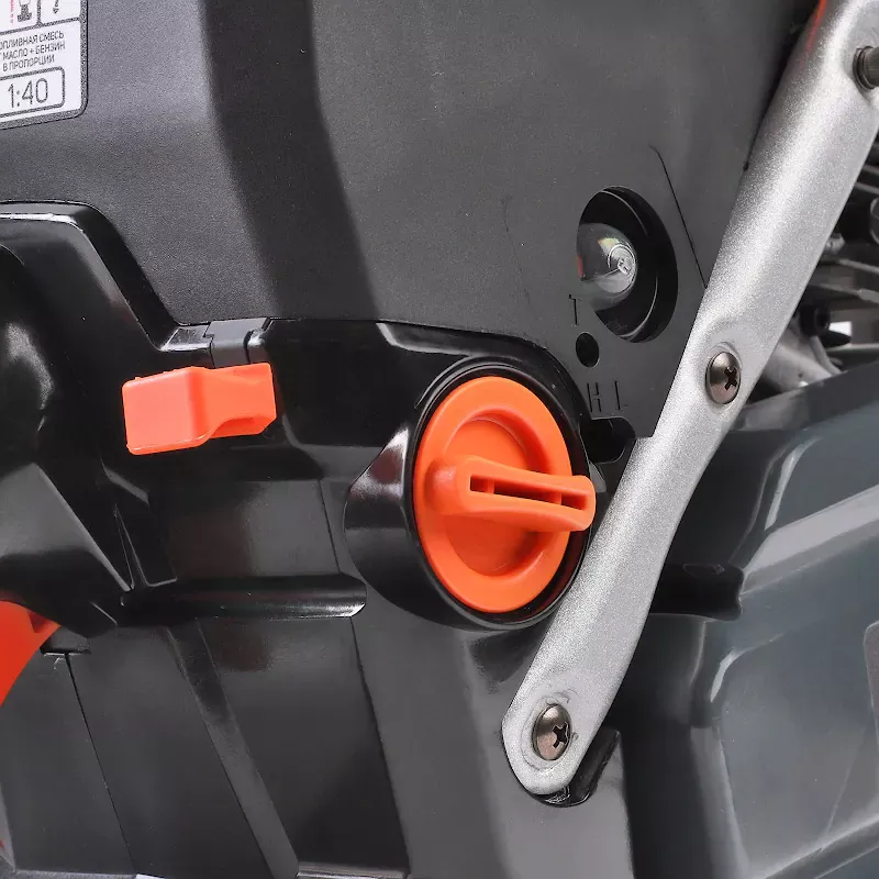Двигатель имеет систему облегченного запуска. Благодаря декомпрессионному клапану в пусковом устройстве вам не нужно прилагать излишних усилий при вытягивании троса стартера. Выключатель зажигания, удобно расположенный на рукоятке, позволяет мгновенно заглушить двигатель и остановить вращение диска.