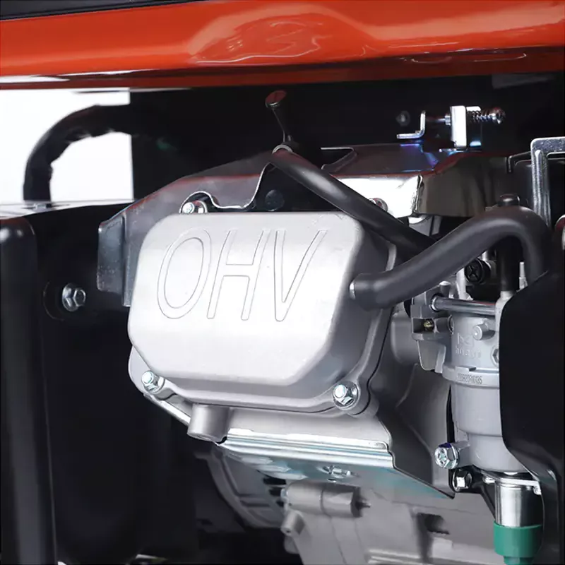Сварная металлическая рама, огибающая весь корпус, и усиленная передняя панель с утопленными элементами управления снижают вероятность механических повреждений. Нижняя часть рамы служит устойчивой опорой, а верхняя — держателем для переноски. Для удобства перемещения мини-электростанции предусмотрены два колеса. Амортизаторы гасят вибрацию и обеспечивают устойчивость электрогенератора.