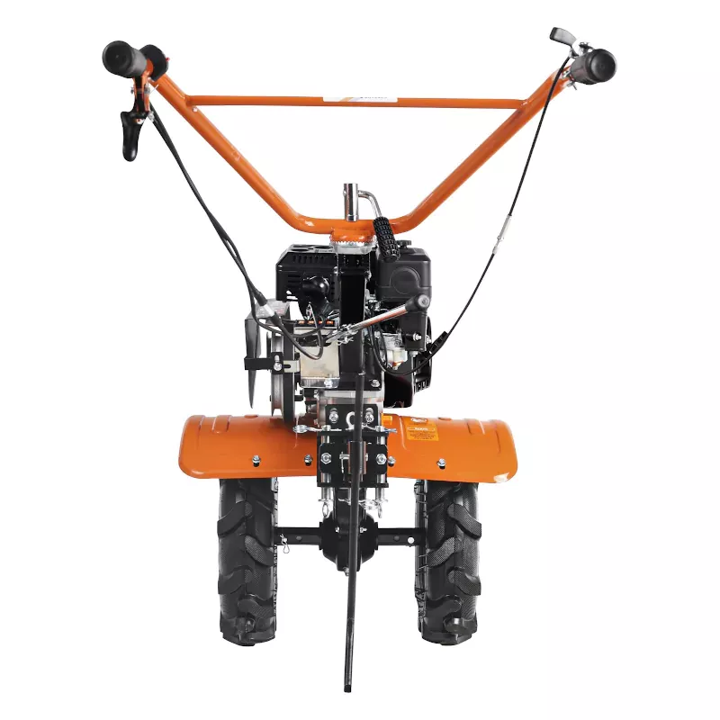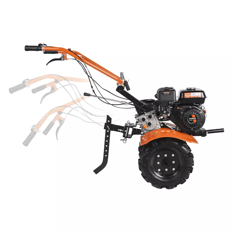 Мотоблок PATRIOT КАЛУГА оснащен колесными покрышками с высокими рельефными протекторами, которые отличаются хорошим сцеплением с грунтом и маневренностью. Металлические крылья защищают от вращающихся частей мотоблока и летящих во время работы комьев земли. Продолжительная работа без дозаправки гарантирована благодаря вместительному топливному баку. Используемый в качестве трансмиссии шестеренчатый редуктор в алюминиевом корпусе с масляной ванной обеспечивает долгий срок службы и высокую надежность мотоблока. Рукоятку можно сложить на время хранения.