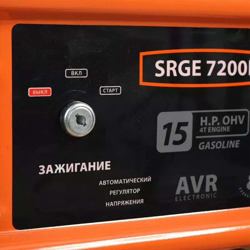 В бензогенераторе Patriot Max Power SRGE 7200E используется двигатель с верхним расположением клапанов. Такой мотор отличается долговечностью, сниженным количеством вредных выхлопов и бесшумной работой.
