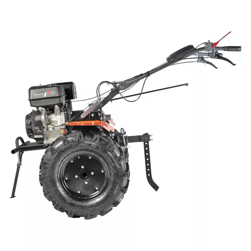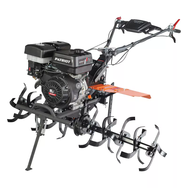 Бензиновый мотоблок PATRIOT Nevada 15 обладает внушительным весом в 153 кг и двигателем мощностью 15 л.с. Поставляется в комплекте с высокопрочными фрезами, которые обеспечивают ширину захвата 1100 мм. Вал отбора мощности позволяет устанавливать активное навесное оборудование. Модель станет идеальным помощником на больших участках с твердой почвой.