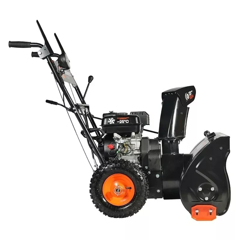 Двигатель снегоуборщика легко заводится с помощью ручного стартера при температуре до -25_ С. Праймер для подкачки масла в карбюратор упрощает запуск непрогретого мотора. Ручки топливного крана, управления воздушной заслонкой и рычага газа сконструированы таким образом, чтобы их было удобно переключать даже в толстых перчатках.