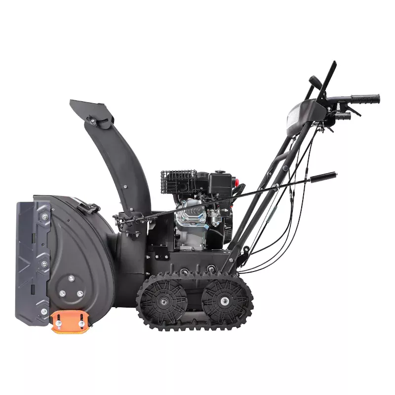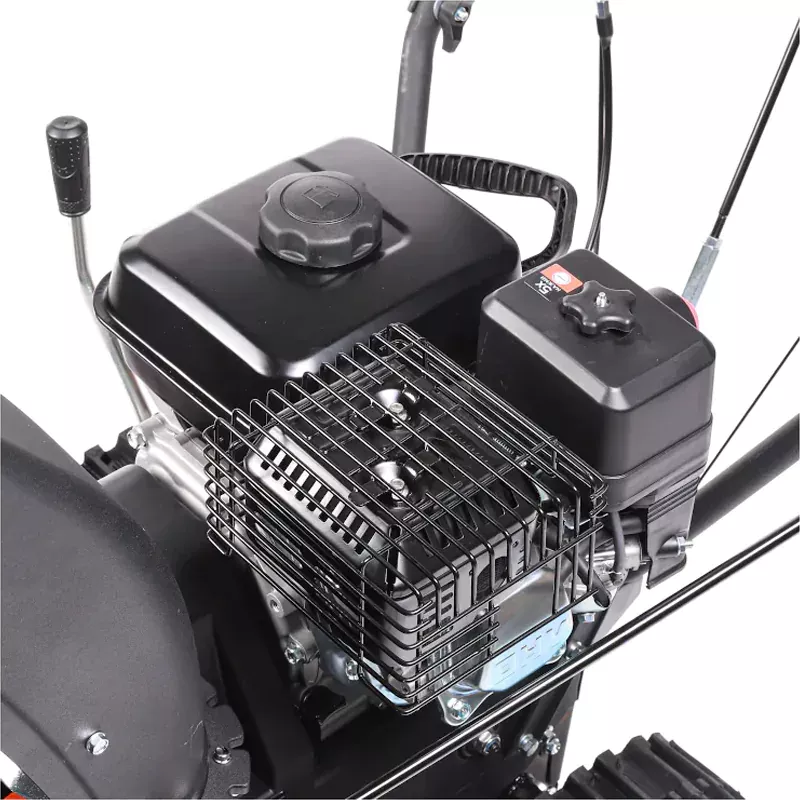 Все элементы управления бензиновым снегоуборщиком расположены на отдельной панели для быстрого доступа. Вы можете запускать двигатель, регулировать скорость передвижения, настраивать дальность выброса снега. С управлением разберется даже новичок.