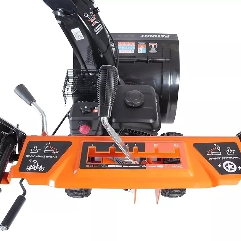 Самоходный снегоуборщик Patriot Сибирь 62 самостоятельно перемещается вперед и назад, вы можете настроить удобную скорость с помощью рычага, расположенного на панели управления. Проводить уборку рекомендуется на 1–2 передачах, 3 и 4 предусмотрены для удобной транспортировки инструмента. Благодаря обратному ходу легко достать застрявшую машину из любого сугроба.
