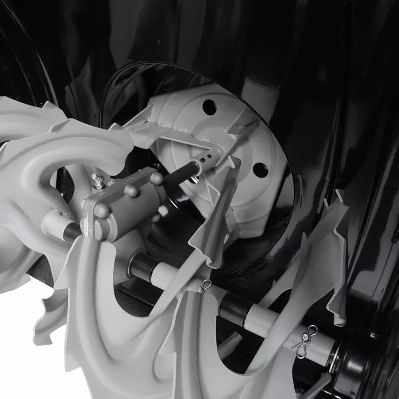 - Стальной секционный шнек с зубчатым профилем перемалывает залежалый и мокрый снег и способен измельчать даже заледенелые сугробы.
