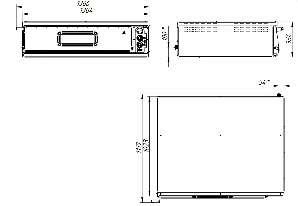 - Габаритные размеры, мм: 1304(1366)x1023(1119)x364
