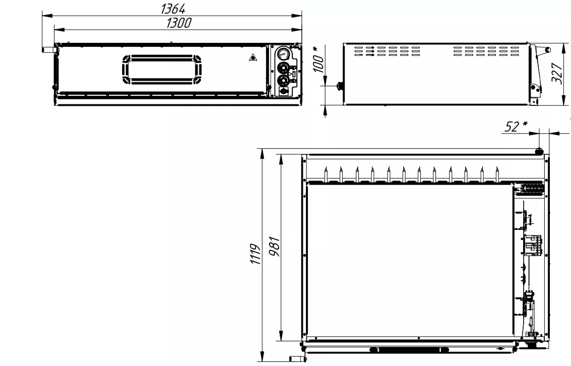 - Габаритные размеры, мм: 1300(1364)x1021(1119)x327