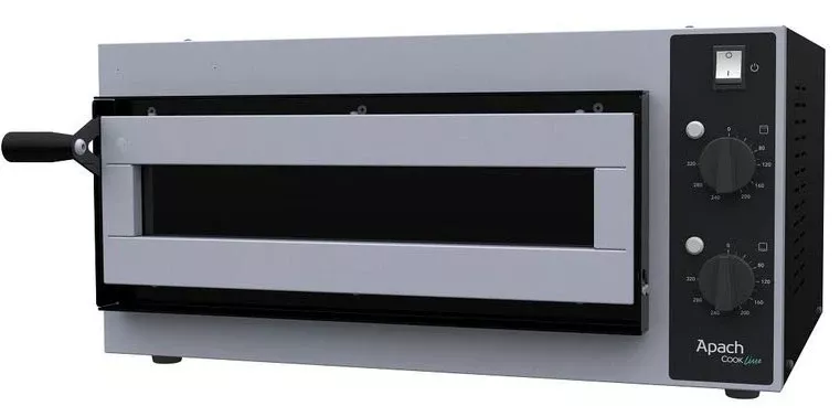 Печь для пиццы Apach AMS1 P с уменьшенным размером окна предназначена для приготовления традиционной итальянской пиццы любого сорта, а также для выпечки различной хлебобулочной продукции, не требующей увлажнения.