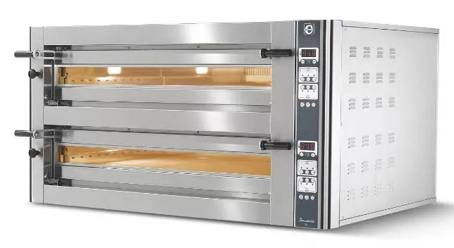 Печь для пиццы Cuppone DN635/2CD с передней панелью и камерой выпечки из нержавеющей стали. предназначена для приготовления пиццы и различных закусок, таких как, сэндвичи, куриные стрипсы и т.д. на предприятиях общественного питания.