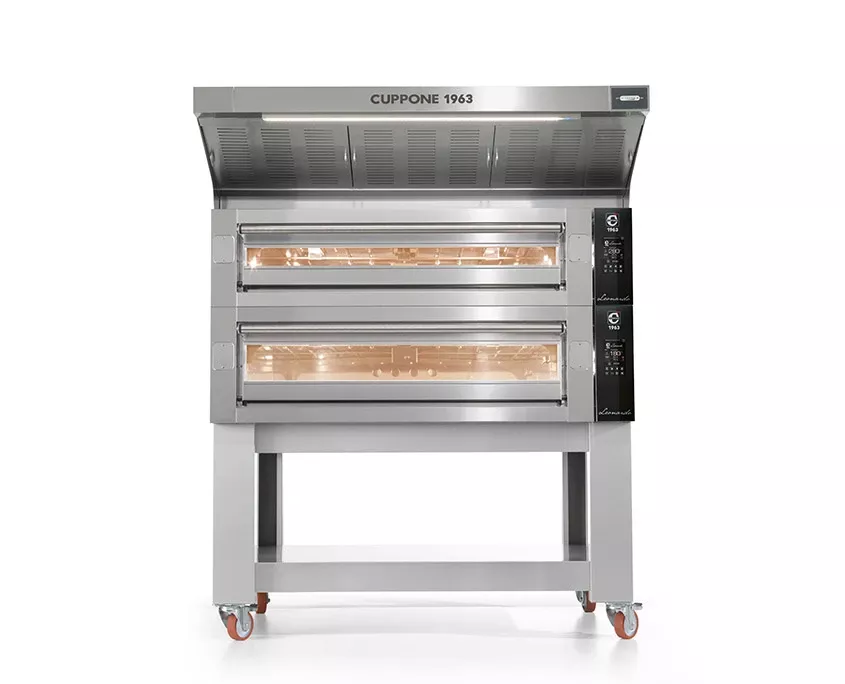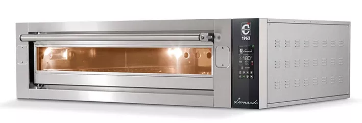 Максимальная универсальность, большая точность и оптимизация производительности, практичность в эксплуатации – вот плюсы цифровой электропечи LEONARDO для установки в колонну, снабженной управлением посредством сенсорного дисплея, обеспечивающего возможность установки температуры камеры и мощности двух групп тэнов (на своде и подовой части) от 0% до 100%; программирование приготовления и включения на неделю вперед. Идеально подходит для приготовления пиццы и фокаччи, сочетая в себе модуль с высокой камерой, снабженной парообразователем, благодаря которому возможно также выпекание хлеба и кондитерских изделий. Потрясающая универсальность для разнообразия производства и расширения круга клиентов.