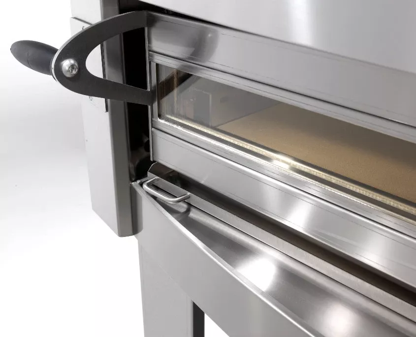 Печь для пиццы Cuppone ML935/2CD с передней панелью округлой формы из нержавеющей стали предназначена для приготовления пиццы и различных закусок, таких как, сэндвичи, куриные стрипсы и т.д. на предприятиях общественного питания.