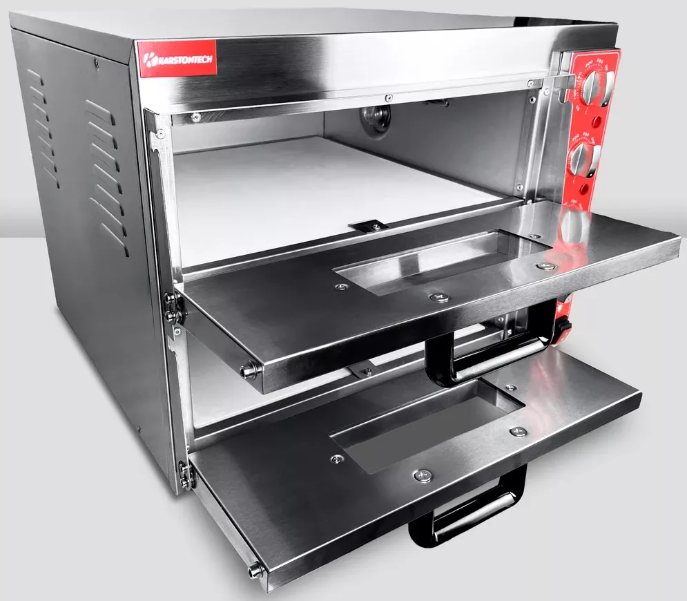 Печь для пиццы Karstontech KS-P2ST используется на предприятиях общественного питания и торговли для выпечки пиццы и хлеба.