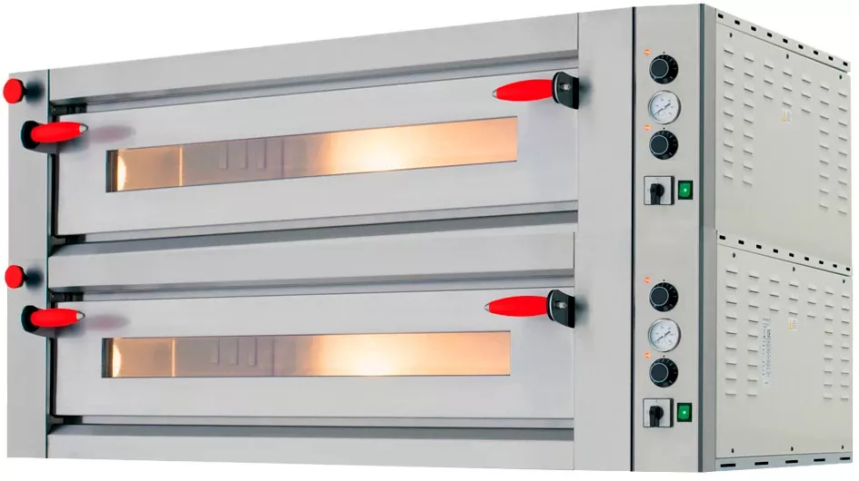Печь для пиццы Pyralis М8 прекрасно подходит для крупных заведений. В двух тепловых камерах одновременно выпекается по 4 изделия диаметром 330 мм. Если учесть, что время приготовления этого блюда минимально, то заказ будет выполнен очень быстро. Ваши клиенты будут приятно удивлены и качеством блюда и скоростью выполнения заказа.