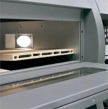 Внутренняя подсветка тепловой камеры и жаропрочное смотровое стекло позволяют постоянно контролировать процесс приготовления пиццы не открывая дверцу.