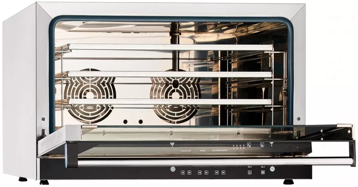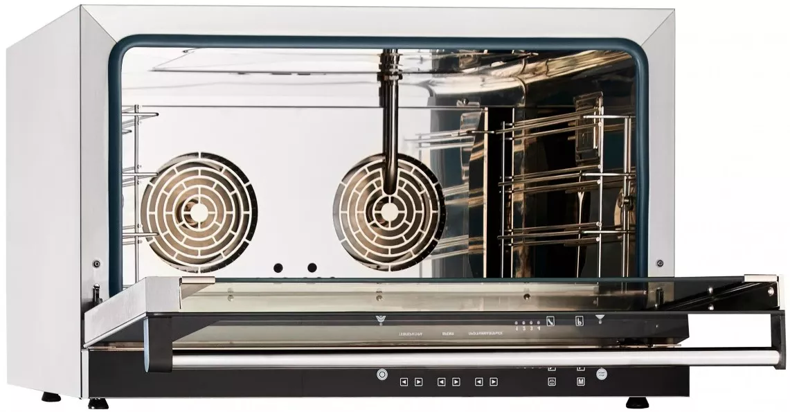 Термообработка продуктов осуществляется за счет равномерной циркуляции горячего воздуха внутри рабочей камеры.