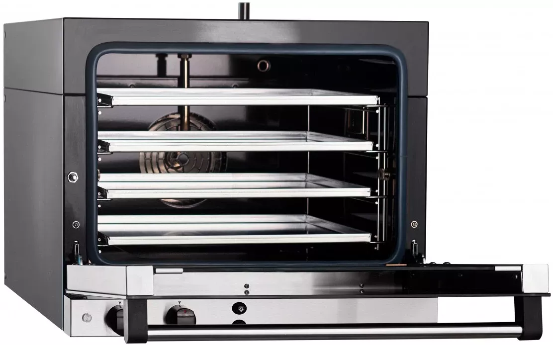 Термообработка продуктов осуществляется за счет равномерной циркуляции горячего воздуха внутри рабочей камеры.
