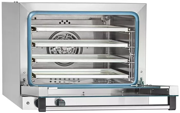 Термообработка продуктов осуществляется за счет равномерной циркуляции горячего воздуха внутри рабочей камеры.