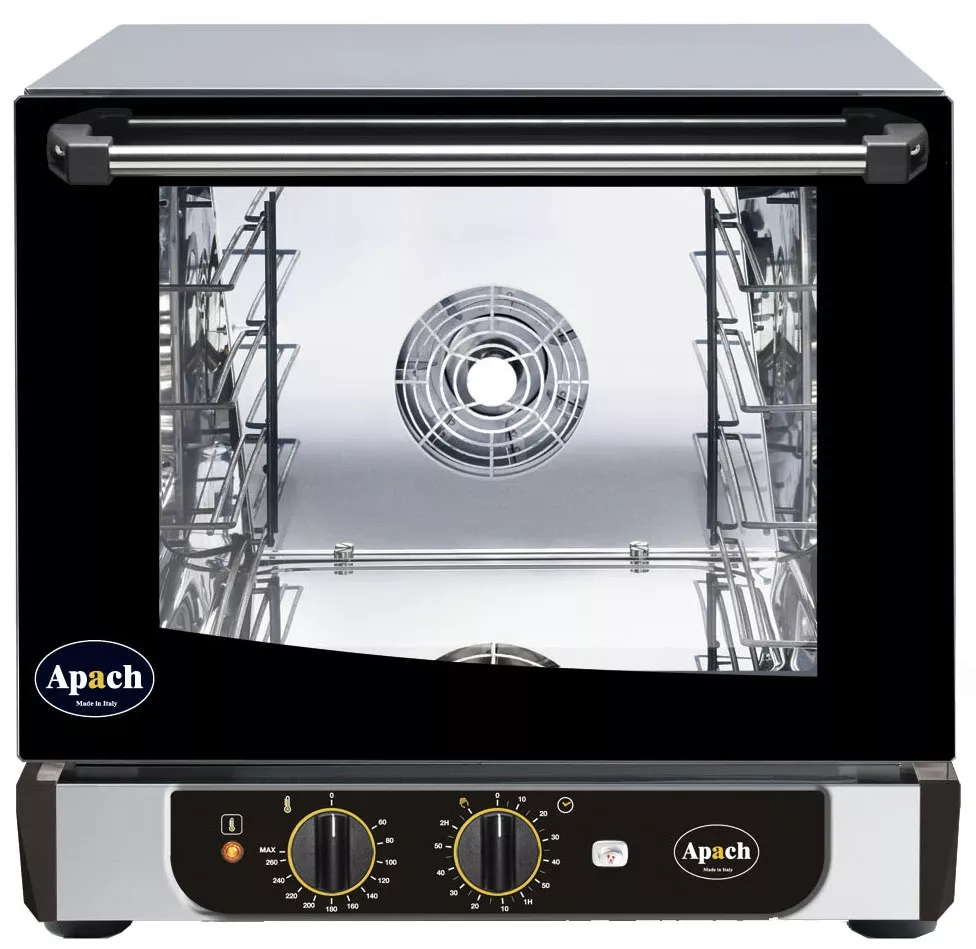 Печь конвекционная электрическая Apach AD44MH Eco со встроенной помпой - идеальное решение для малых заведений, где нет возможности подключить печь к водопроводу.