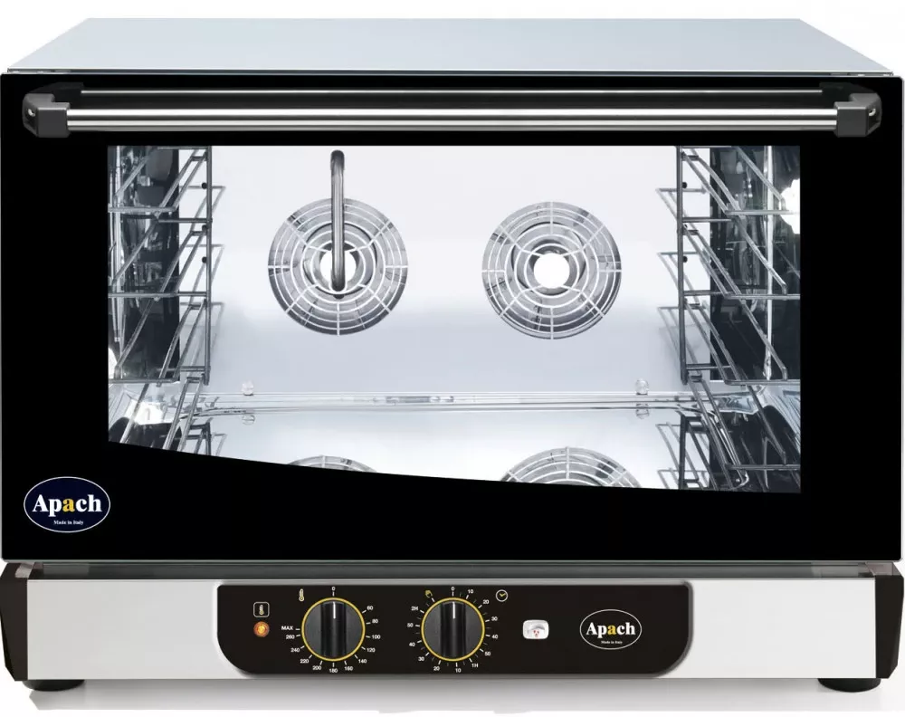 Печь конвекционная электрическая Apach AD46MI Eco предназначена для выпекания или разогрева кондитерских и хлебобулочных изделий, готовых блюд, замороженных или предварительно выдержанных в расстоечном шкафу заготовок из теста на предприятиях пищевой промышленности, общественного питания и торговли.