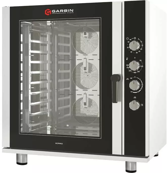 Печь конвекционная электрическая Garbin 12M серии G|Pro Gastronomy предназначена для выпекания или разогрева кондитерских и хлебобулочных изделий, готовых блюд, замороженных или предварительно выдержанных в расстоечном шкафу заготовок из теста на предприятиях пищевой промышленности, общественного питания и торговли.
