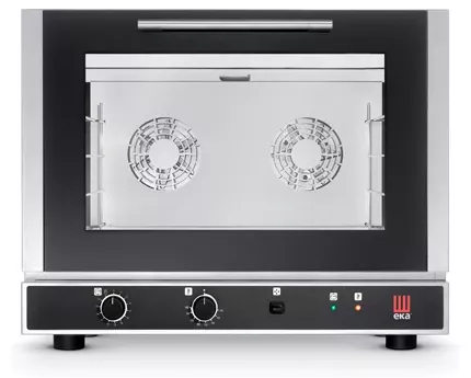 Модель EKF 464 от итальянского бренда Technoeka создана для небольших баров, пиццерий, кондитерских, где площадь кухни ограничена. Компактная печь вмещает четыре уменьшенных противня, которые приобретаются отдельно. Расширенные режимы позволяют готовить дрожжевые, слоеные изделия, мясо, а также размораживать полуфабрикаты и разогревать блюда. Два вентилятора продвигают горячий воздух по всем уровням. Конвекционный способ приготовления комбинируется с обработкой паром.